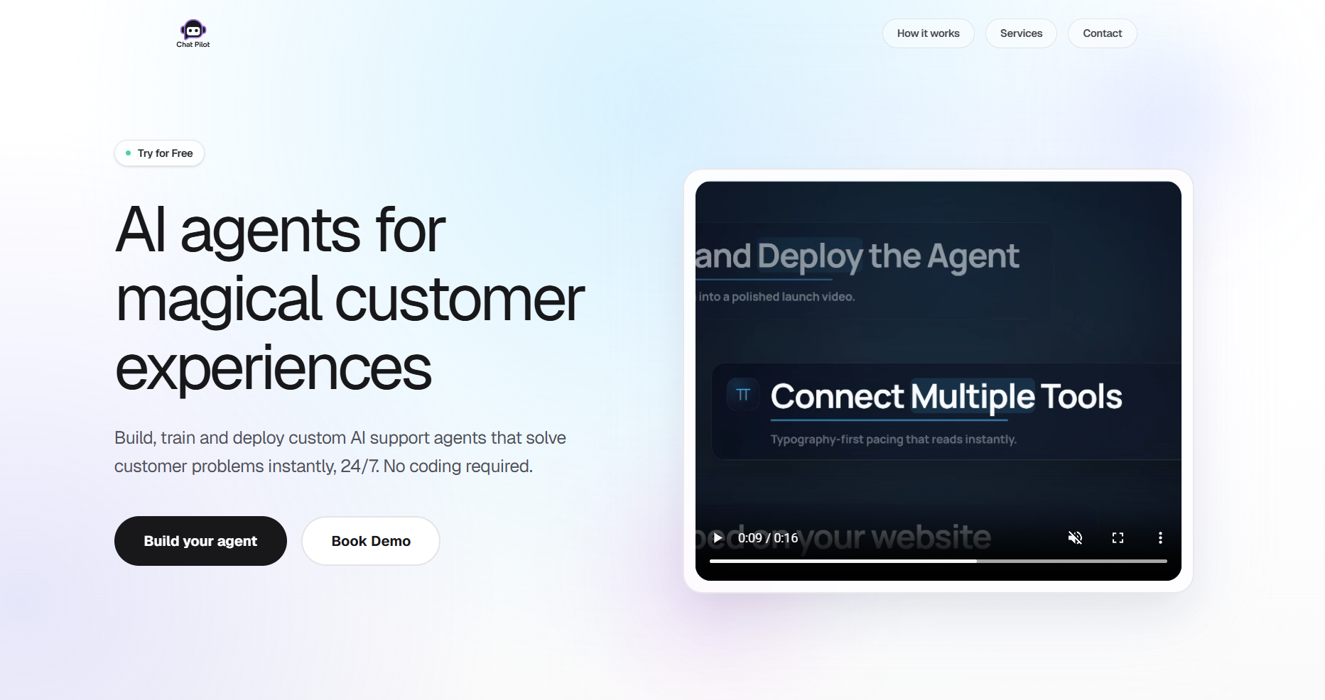 Build, train and deploy custom AI support agents that solve customer problems instantly, 24/7. No coding required.